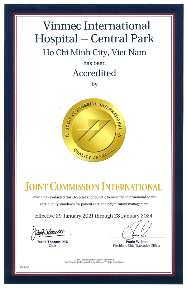 Vinmec Times City is the first hospital in Vietnam to be accredited by the Joint Commission International (JCI), the world leader in healthcare accreditation. Until now, Vinmec Times City and Vinmec Central Park have been re-accredited for 3 and 2 times consecutively. And Vinmec Healthcare System is the one and only medical system with 2 JCI-accredited hospitals.